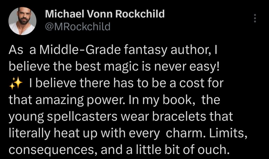 As a Middle-Grade fantasy author, I believe the best magic is never easy! ✨ I believe there has to be a cost for that amazing power. In my book, the young spellcasters wear bracelets that literally heat up with every charm. Limits, consequences, and a little bit of ouch.